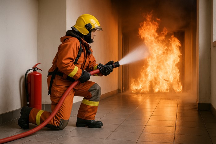 Nhà xưởng & khu công nghiệp: Trang thiết bị chữa cháy quy mô lớn, hệ thống vòi chữa cháy.