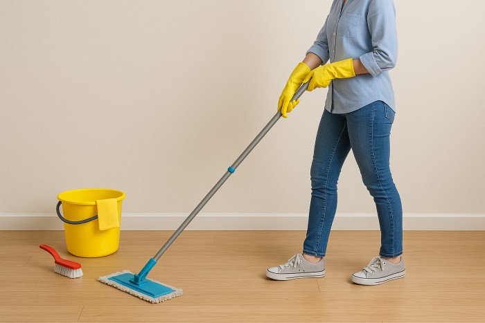 Chổi, cây lau nhà: vệ sinh sàn gạch, gỗ, đá.