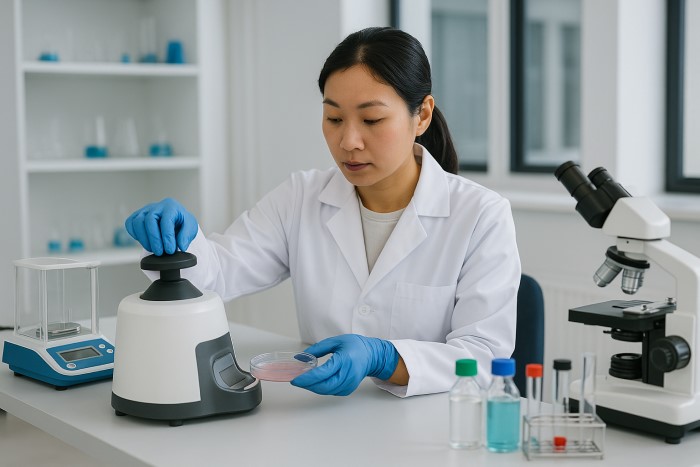 Phòng QA/QC quy mô nhỏ : có thể sử dụng thiết bị phổ thông và vật tư từ MPE, Nanoco.