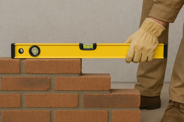 Xây tường, trát & lát: Đo kích thước viên gạch, chiều cao tường, độ phẳng & cân bằng bề mặt.