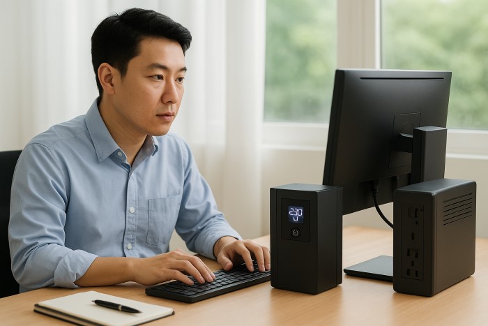 Máy tính, thiết bị văn phòng: Chọn UPS Line Interactive 650VA – 2000VA.
