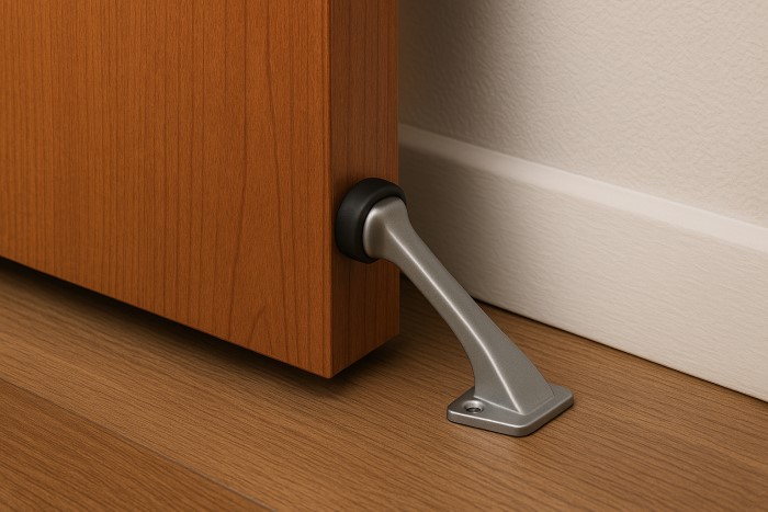 Chặn cửa gắn sàn: Gắn cố định dưới nền, ngăn cửa va đập tường.
