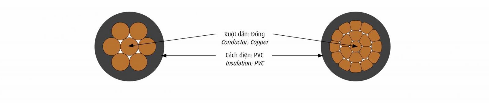 CV 1.0mm² – 2.5mm²: đi dây chiếu sáng, ổ cắm dân dụng.