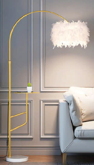 Mẫu đèn cây lông vũ tích hợp đế không chỉ là thiết bị chiếu sáng mà còn là một món đồ nội thất đa năng, phù hợp với nhiều không gian và mục đích sử dụng khác nhau