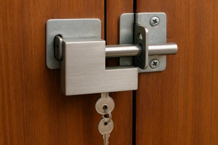 Với khu vực cần bảo mật cao, nên chọn khóa cầu ngang 2 chốt hoặc khóa bi từ.