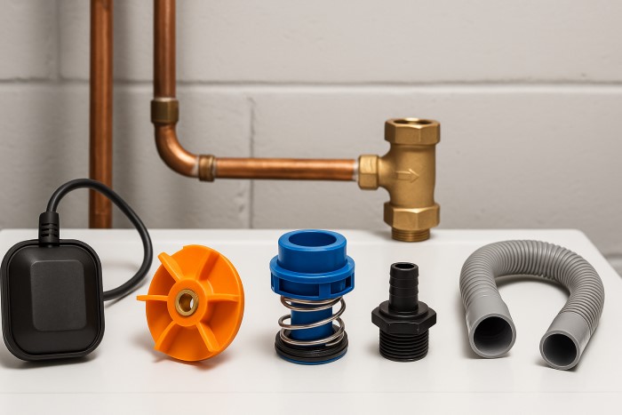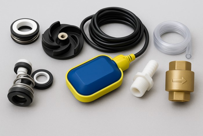 Linh Phụ Kiện Cho Máy Bơm Nước bao gồm các bộ phận phụ trợ, linh kiện thay thế & vật tư bảo trì được sử dụng trong lắp đặt, vận hành và sửa chữa máy bơm nước dân dụng, công nghiệp, giếng khoan, bơm chìm, bơm tăng áp hoặc bơm nước ngưng.
