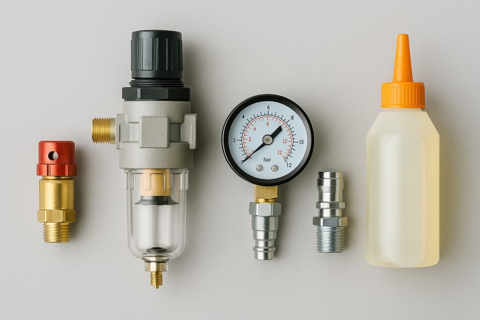 Linh phụ kiện cho máy nén khí bao gồm các chi tiết và thiết bị phụ trợ giúp duy trì hoạt động ổn định, nâng cao hiệu suất và kéo dài tuổi thọ cho máy nén khí.