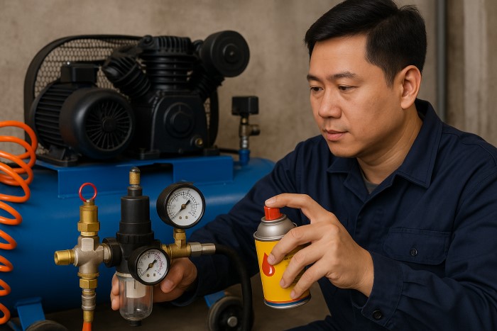Thay thế định kỳ: Lọc khí, lọc dầu, van xả – chọn đúng mã & kích cỡ máy.