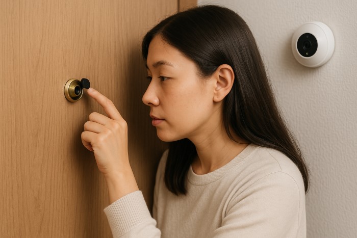 Gia đình – căn hộ: Quan sát khách ngoài cửa, tăng an ninh khi vắng nhà.