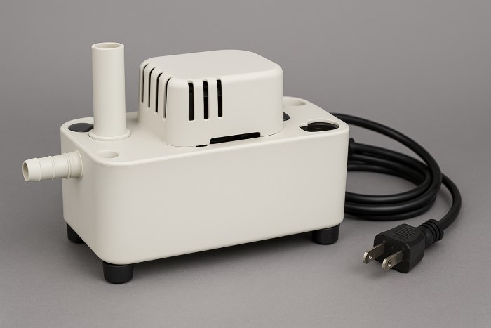 Máy Bơm Nước Ngưng Điều Hòa là thiết bị chuyên dụng dùng để hút và bơm nước ngưng tụ từ dàn lạnh của máy điều hòa ra ngoài hệ thống thoát nước, đặc biệt hữu ích khi máy lạnh lắp đặt âm trần, xa nguồn thoát hoặc vị trí thấp hơn đường ống xả.