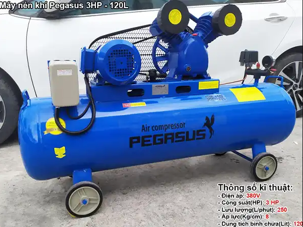 Máy nén khí 3HP (3 Horse Power) là dòng máy nén khí tầm trung – công suất lớn, có khả năng nén khí nhanh, lưu lượng khí lớn và duy trì áp lực ổn định 8–10 bar, phù hợp cho xưởng cơ khí, gara ô tô, xưởng gỗ, nhà máy sản xuất nhỏ và cửa hàng dịch vụ kỹ thuật.