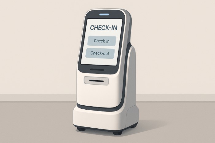 Kiosk cố định (Self Check-in Kiosk): Màn hình cảm ứng lớn, máy quét & thanh toán tích hợp.
