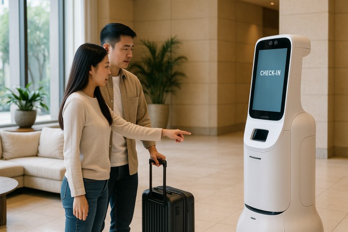 Một số phiên bản còn có khả năng giao tiếp giọng nói, nhận diện đa ngôn ngữ & kết nối robot phục vụ phòng hoặc hệ thống quản lý khách sạn (PMS – Property Management System).