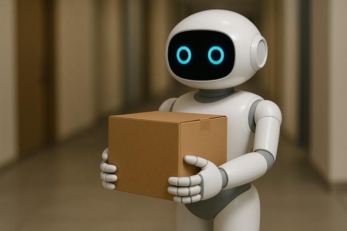 Robot giao hàng nội bộ là giải pháp tự động hóa logistics trong tòa nhà và nhà máy, giúp doanh nghiệp tiết kiệm nhân sự, tăng năng suất và đảm bảo an toàn vận hành.