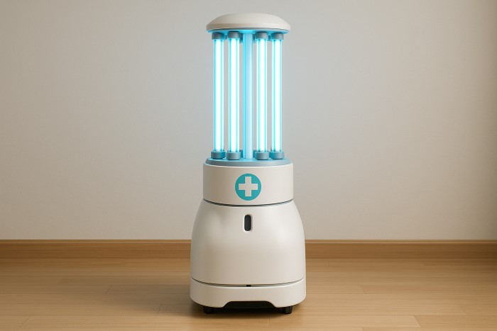 Robot tia UV-C: Tiêu diệt nhanh vi khuẩn & virus bằng ánh sáng cực tím – hiệu quả cho phòng kín.