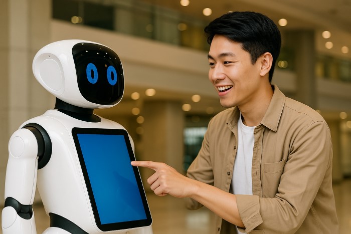 Robot tương tác quảng cáo cảm biến : sử dụng AI và cảm biến để nhận diện, tương tác với khách hàng.