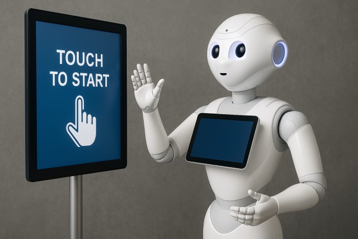 Robot màn hình cảm ứng (Touch Screen): Màn hình LCD / LED 15–27 inch, tương tác trực tiếp.