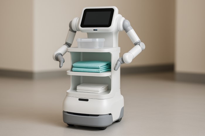Robot đa năng (Hybrid): Vừa giao thuốc, vừa khử khuẩn, tích hợp AI nhận diện y tá – bác sĩ.