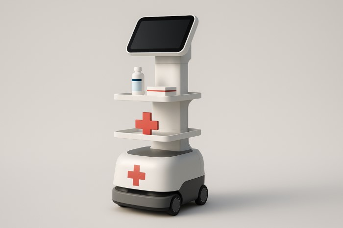 Robot vận chuyển y tế (Medical Delivery Robot / Hospital Logistic Robot) là dòng robot tự hành thông minh (AMR – Autonomous Mobile Robot) được thiết kế chuyên biệt cho bệnh viện, phòng khám & trung tâm y tế, nhằm tự động hóa việc vận chuyển thuốc, mẫu xét nghiệm, hồ sơ bệnh án, vật tư y tế hoặc thiết bị hỗ trợ giữa các khoa – phòng.