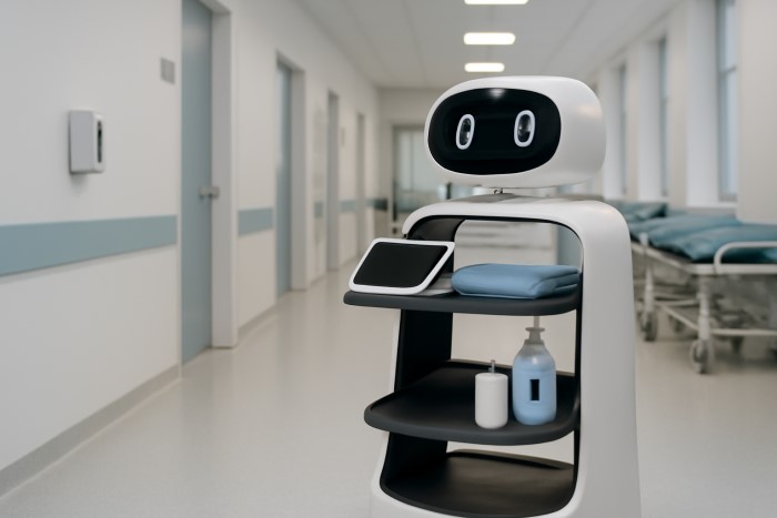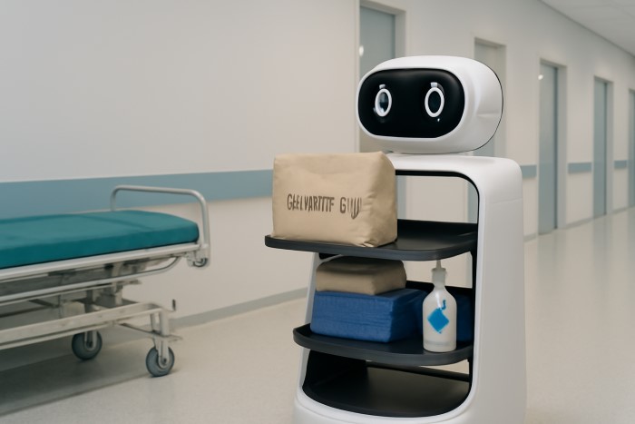 Robot vận chuyển y tế: di chuyển các thiết bị y tế, thuốc, mẫu xét nghiệm trong bệnh viện, giảm thiểu tác động của nhân viên.