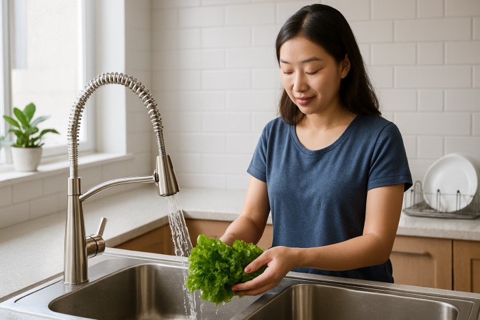 Gia đình: rửa chén bát, rau củ, vệ sinh bồn rửa.